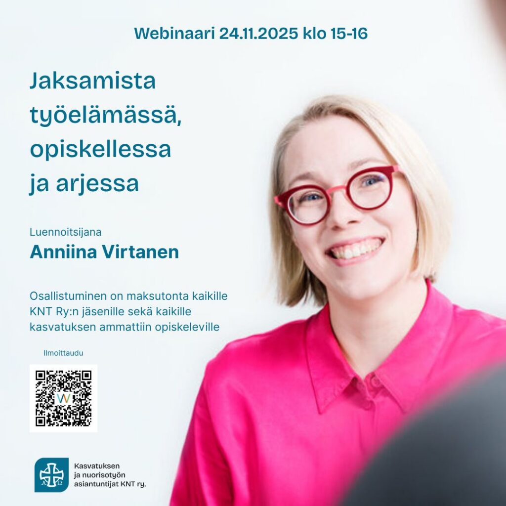 KNT järjestää webinaariin, jossa syvennytään jaksamisen ja palautumisen teemoihin arjen eri osa-alueilla. Luennoitsijana Anniina Virtanen. Anniina on laillistettu psykologi ja psykologian tohtori, joka on tutkinut mm. työkuormitusta, palautumista, työn tuunaamista ja työn imua. Hänen erikoisalaansa on mielen palautuminen työkuormituksesta – aihe, jota hän käsitteli myös väitöskirjassaan. Webinaarissa saat tutkimukseen perustuvaa tietoa jaksamisesta ja palautumisestaKäytännön vinkkejä … Jatkuu
